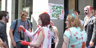 What we found was that Dublin seems full of young people... and that is not just because we are only used to seeing older people on the boat.... We can only surmise that Trinity College attracts lots of students to the area... I guess as Dublin is steeped in literary and arts history, this seems to have continued through the ages... although the youngans that spray painted themselves as zombies and walked the street did attract a lot of attention.