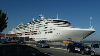 Another highlight was the welcome by the port’s tug. As this was the inaugural visit of the Dawn Princess to the port of Lisbon we were treated with an escort up the river by a tug all decorated with flags. He would blow his horn and we would blow ours.... he would scoot to one side of ship and perform a couple of doughnuts then scoot around the other side and doughnut some more. This happened continually until we docked. Then he was back again as we sailed out....doughnuting and hooting... This would have to be one of the more beautiful sail in’s we have had..